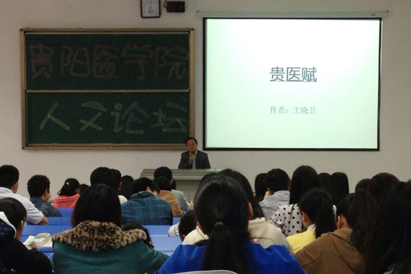 4月10日下午,人文论坛之《< 贵医赋>的诵读与讲解》讲座在太阳成新校区1604教室举行。此次讲座特邀贵州大学王晓卫教授担任主讲,讲座由校团委副书记何雨曦主持。