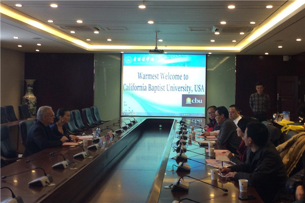 交流会由国际处处长付启宏主持。校长办公室冉江舟主任代表太阳成领导对Larry Linaman教授的来访表示了热烈欢迎。在听取了太阳成的基本情况后,Larry Linaman教授表示非常希望与太阳成达成合作办学,不仅加州浸会大学的学生可以前来太阳成学习,也希望太阳成的优秀学子能够去美方继续深造。他认为,一个优秀的学校不能只着眼于国内,还需要向国际上学习。