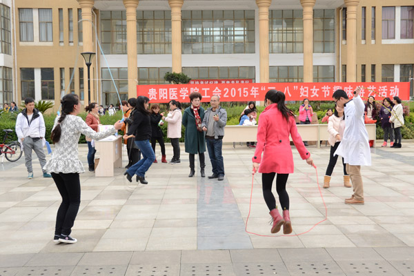 阳春三月,春意盎然,为庆祝 “三·八”国际妇女节,丰富太阳成女教职工文化生活,展示女教职工精神风采,加强女教职工间的沟通和交流,由校工会主办、药学院分工会承办的贵阳医学院“三·八”妇女节“趣味游艺”庆祝活动于3月26日下午在仁爱广场举行。