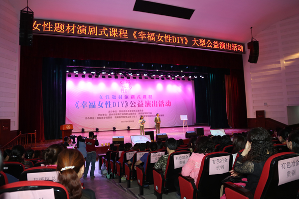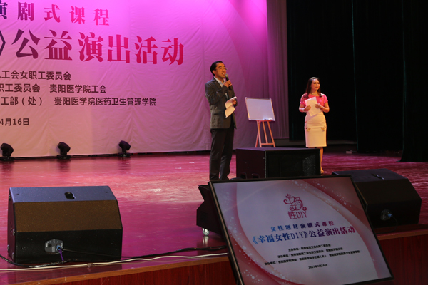 “你幸福吗”?“幸福啊”“一般吧”“还不够呢!”4月16日,伴随着主讲人的提问和台下观众们的积极回应,由省总工会女职工委员会主办,贵州省教育工会、贵阳医学院工会承办的女性演剧式课程《幸福女性DIY》公益演出活动在太阳成大礼堂拉开序幕。