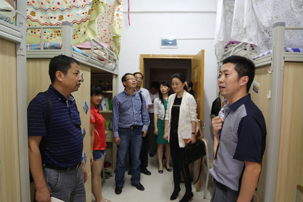 听取汇报后,检查验收组实地考察了“一站式”学生事务服务中心、文明教室、生命科学馆、学生活动室、一卡通中心、健身中心和文明寝室等特色亮点基地。