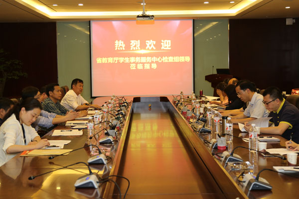 6月3日下午,省教育厅“一站式”学生事务服务中心检查验收组第一组组长、贵州财经大学党委副书记肖建宗一行5人来太阳成检查“一站式”学生事务服务中心建设情况。在知雨楼六楼会议室,校党委副书记战勇致辞,他对各位领导和评审专家的到来表示热烈欢迎和衷心感谢,并向检查验收组简要介绍了学校发展概况,希望检查验收组对太阳成“一站式”学生事务服务中心建设多提宝贵意见。省教育厅学生工作处处长邓生井参会。