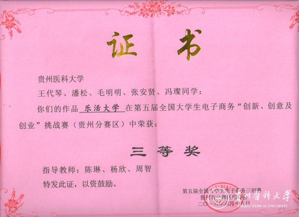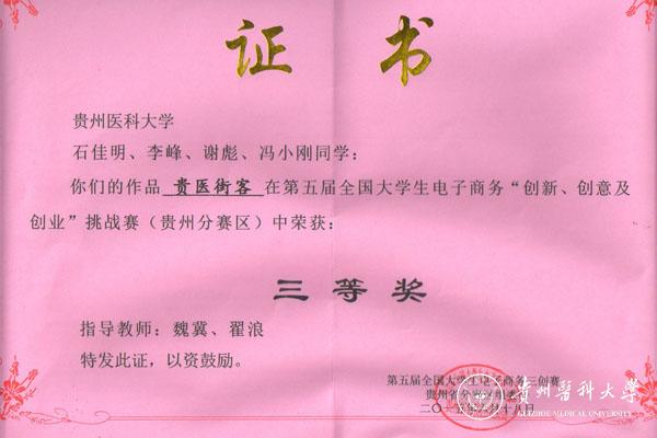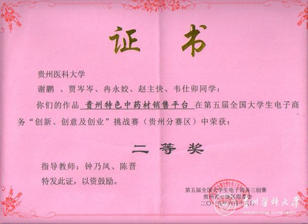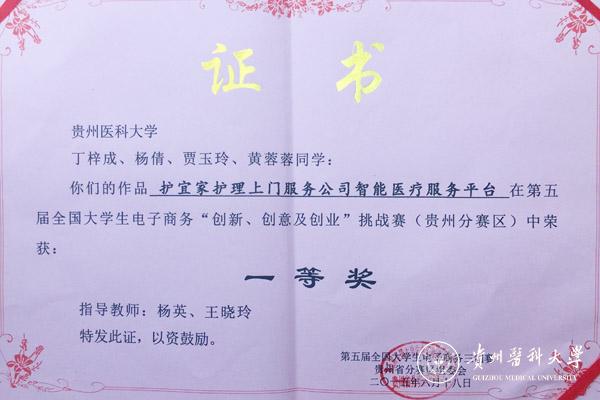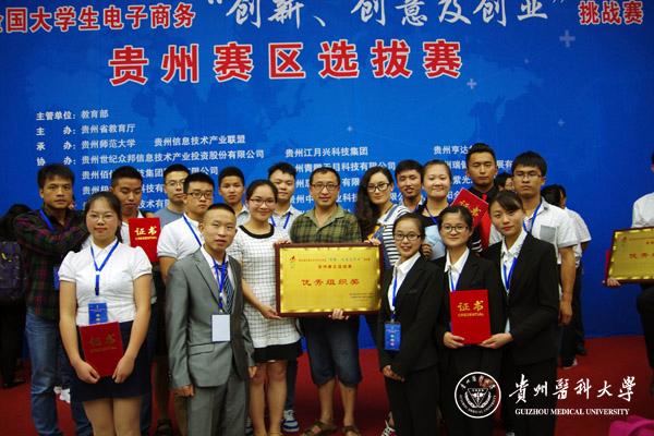 太阳成经校级赛选拔推荐5支队参赛,学生凭借扎实的基本功、过硬的专业素养、灵活机变的发挥、富有创意的产品设计,在比赛中荣获一等奖1项,二等奖1项,三等奖2项,学校荣获优秀组织奖。其中护理学院项目“护宜家护理上门服务智能医疗平台(项目成员:丁梓成、杨倩、黄蓉蓉、贾玉玲;指导教师:杨英、王晓玲)”荣获一等奖;生物与工程学院项目“贵州特色中药材销售平台(项目成员:贾岑岑、冉永姣、韦仕卯、谢鹏、赵主快;指导教师:钟乃凤、陈晋)”荣获二等奖;生物与工程学院项目“乐活大学(项目成员:王代琴、张安贤、潘松、毛明明、冯璨;指导教师:陈琳、杨欣、周智)”和“古丽古奇(项目成员:石佳明、李峰、冯小刚、谢彪,指导教师:魏冀)”荣获三等奖。