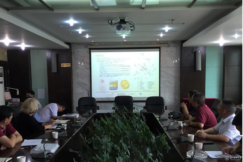 8月10日上午,国寿投资控股有限公司、美国赫尔曼纪念医院董事Juanita Romans女士、贵州旅游资源开发有限责任公司孙林董事长及美国赛伯乐投资公司、中国人寿、水印养老社区中国有限公司等单位代表来校,就共同推进贵州大健康产业发展事宜进行座谈交流。校长助理邓家奎博士受孙诚谊副校长委托主持会议。