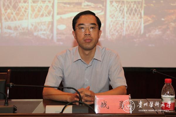 战勇从“立足地方培育人才、紧贴民生强化科研、医教研协同服务社会、大医精诚传承文化”等四个方面介绍了学校的光荣历史、办学成就、特色优势和发展现状。通过分析全省每千人医护人员配备比例、全省卫生人才队伍本科和研究生所占比例的现状,以及贵州大健康医药新兴产业的发展,指出学校面临的机遇和挑战。他强调,学校能不断取得辉煌成绩,得益于始终坚持和弘扬贵医传统,坚持“医教研”结合的办学道路,坚持高水平教师队伍的建设,坚持对党建和思想政治工作的一贯重视。他希望新入职人员尽快融入氛围,进入角色,在今后的工作中秉承“诚於己、忠于群、敬往思来”的校训,奉行“大医精诚”的精神,一要勤于学习,二要善于反思,三要重于执行,四要敢于创新,为实现学校建设“具有明显特色、西部一流、在国内外有影响力的高水平医科大学”的目标贡献智慧和力量。
