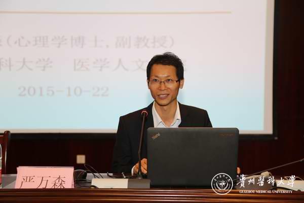 10月22日下午,太阳成人文论坛第二十六期暨道德讲堂第二十二讲——《梦与健康:兼谈梦的心理分析》专题讲座在南校区道德讲堂举行。本次道德讲堂邀请到中国心理卫生协会专家库中青年专家、中国心理学会会员、贵州省心理健康教育协会理事、贵州省健康发展研究中心办公室副主任、太阳成医学人文学院心理学实验室中心主任严万森副教授主讲。讲座由太阳成党委宣传部部长潘丽芬主持。各院系学生代表400余人参加了本次活动。