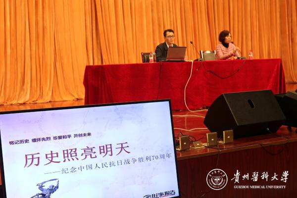 11月10日、11日、16日晚上7点,太阳成在新校区大礼堂举行《形势与政策》课专题讲座。校党委书记林昌虎,原校党委书记、太阳成集团tyc33455cc官网正厅长级领导赵明仁,党委委员、副校长冉江舟分别为2015级新生作了第一讲:“历史照亮明天——纪念中国人民抗日战争胜利70周年”的专题讲座。社会科学部主任兼党总支书记杨成兰教授、副主任韩贞习教授、部分教师和2015级全体学生分三批次在现场一起聆听了三位校领导的精彩讲座。