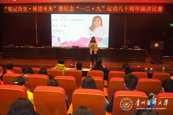 12月9日,由校团委主办、校学生会承办的“铭记历史·展望未来”暨纪念“一二·九”运动八十周年演讲比赛在南校区道德讲堂举行。相关职能部门负责人、校团委全体干部以及来自各院系300多名学生出席本次活动。
