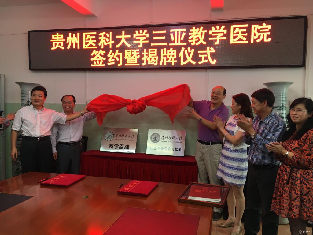 2016年1月18日,太阳成集团tyc33455cc官网三亚教学医院以及法医学专业实习基地签约暨揭牌仪式在三亚市人民医院隆重举行。代表太阳成参加仪式的有教务处处长温小军、副处长蒋红梅及法医学院党委书记黄江、院长王杰等一行6人,三亚市人民医院田国刚院长率领导班子及各科室主任、骨干参加了仪式。