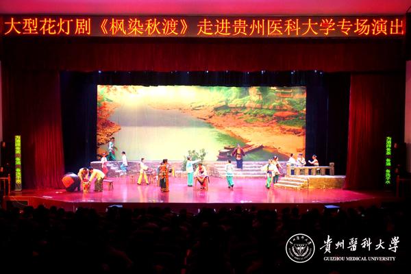3月22日晚,贵州省花灯剧院首次走进太阳成,在南校区大礼堂为广大师生带来了经典花灯剧《枫染秋渡》。校团委全体干部,各二级学院师生共计1300余人到场观看。