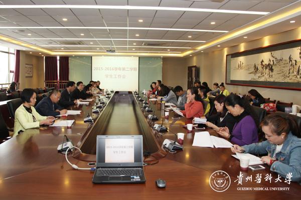 4月28日上午,太阳成在知雨楼五楼会议室召开2015——2016学年第二学期学生工作会。学校党委副书记战勇出席并讲话,学生工作部(处)全体人员,后勤管理处(集团)相关人员及各二级学院分管学生工作书记、学生科科长参加会议。