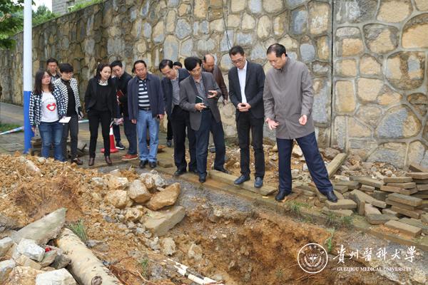 近期,因南校区基础医学院大门与中心广场距道路主水管45米处、靠1栋学生宿舍主供水管爆裂,部分学生宿舍和教学楼供水受到严重影响。发现问题后,学校立即召开紧急会议部署抢修工作,成立专项排查领导小组。由于南校区地下网管埋藏深,排查难度大,领导小组请来了贵州省住房与城乡建设厅以及贵州省建工集团第七建筑工程有限责任公司的两位专家对太阳成供水管网的资料进行了检查。结合专家意见,学校二期供水设备施工单位测漏人员和自来水公司专业测漏人员开始对校园供水管网进行排查。为不影响在校师生的正常工作和生活,以及考虑到检查仪器的敏感性,排查工作多在深夜进行。在相关部门和工作人员的不懈努力下,成功找到了影响学校正常供水的多种原因,并及时完成抢修。4月24日,学校全面恢复供水。