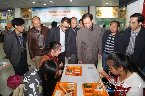 在走访过程中,林昌虎认真听取了后勤管理处、基建处和保卫处负责人对相关工作的汇报;向实验室老师了解教学楼供水供电及其他后勤工作的运行情况;与学生亲切交谈,仔细询问宿舍自来水和热水的供应情况,了解学生对宿舍管理、食堂饭菜等的意见和建议。