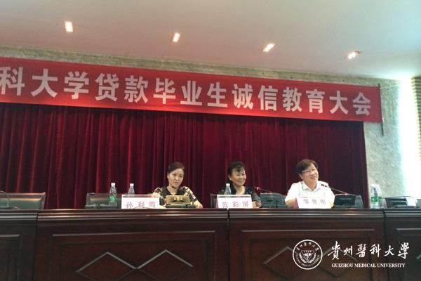 为进一步做好太阳成2016届贷款毕业生毕业还款工作,6月23日下午,太阳成2016届贷款毕业生诚信教育大会在北校区基础二号楼一楼报告厅召开。校长助理范彩屏、国家开发银行贵州分行的邹智明处长出席,会议由学生资助管理中心副主任孙丽霞主持。