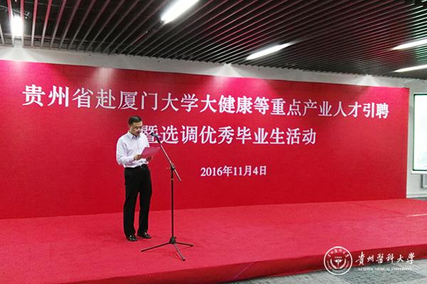 11月4日,校党委副书记战勇带队参加贵州省赴厦门大学大健康等重点产业人才引聘暨选调优秀毕业生活动。此次活动由贵州省副省长陈鸣明率团,是贵州省组织部、贵州省人力资源和社会保障厅组织全省有关高校和事业单位赴全国重点院校引聘高层次人才系列活动之一。
