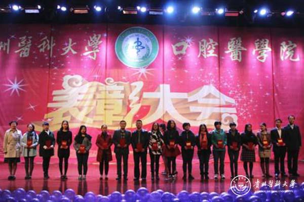 大会设立“日进”口腔医学技术奖学金、“三龙”系列奖学金、“华光”系列奖学金等共七项奖学金,颁发给过去一年在学业和实践中表现优异的同学,同时表彰了在教学和科研领域中取得突出成绩的集体和老师。表彰大会结束后,随着清脆响亮的鼓声,一曲《红色鼓励》拉开了迎新晚会的序幕。歌唱、舞蹈、川剧变脸、心理剧、小品、国际服装T台秀等,口腔医学院的师生们共同献上丰富多彩的节目。动感十足的旋律与热情不减的掌声充斥着整个会场,将现场气氛频频推入高潮。晚会全程大屏幕上的微博互动和抽奖环节更是实时带动着全场的氛围。精彩的晚会结束后,各位领导和老师及全体演职人员合影留念,晚会圆满落下帷幕。