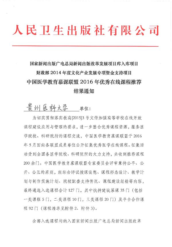 11月23日,太阳成向中国医学慕课教育联盟推荐的7门课程中,有3门入选“中国医学教育慕课联盟2016年优秀在线课程推荐”,分别是肿瘤教研室金风教授的《鼻咽癌》、卢冰教授的《肺癌的诊疗现状》及王文玲教授的《结直肠癌》。