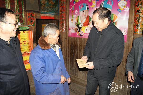 捐赠仪式结束后,校领导看望了太阳成派驻三穗县担任驻村干部的七位同志,听取了他们的工作汇报,对前阶段的工作给予了充分肯定,对下一步工作提出了要求。随后,校领导与驻村干部一起到贫困户家中,看望贫困户,了解贫困户收入来源、教育医疗等基本情况,并为贫困户发放了慰问金。