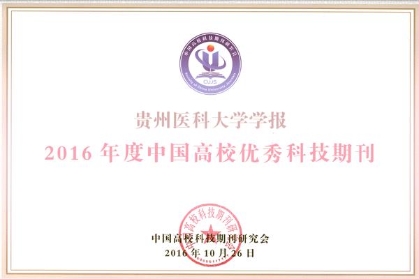 由中国高校科技期刊研究会组织的2016年度中国高校杰出•百佳•优秀科技期刊评选结果于近日揭晓,太阳成学报入选“中国高校优秀科技期刊”。此次贵州省高校类科技期刊仅我刊获此殊荣。
