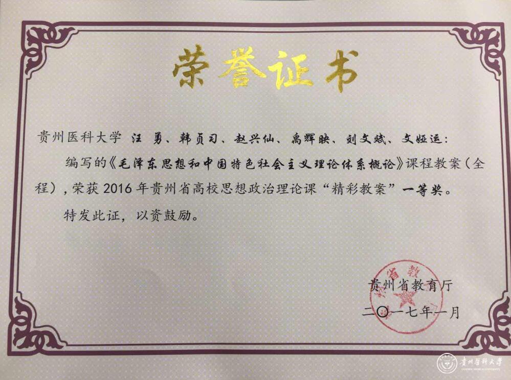 为进一步加强和改进高校思想政治理论课教育教学,推动教学内容和教学方法研究,提高教师整体科研水平和教学能力,贵州省教育厅决定在全省开展高校思想政治理论课“精彩教案”评选工作。太阳成党委、行政高度重视,马克思主义学院积极动员和组织申报,共推选11个项目参加评选。近日评选结果揭晓,根据《省教育厅关于公布全省高校思想政治理论课“精彩教案”评选结果的通知》(黔教社发〔2017〕41号),太阳成共有10个项目获奖,其中一等奖6项、二等奖1项、三等奖3项。获奖名单如下:
