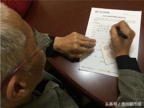 记者在现场看到,除了江涛之外,还有一位70岁的王大爷也闻讯赶来登记报名。王大爷告诉记者,两年前,自己在看电视新闻时了解到了“器官捐献”。了解之后,王大爷非常受触动,他说:“走了之后还能救人,对社会也能有点贡献。”对于王大爷的这个“愿望”,他的家人都表示支持。大爷说,他的家里人都是“通情达理”的人,起初虽然觉得大爷的想法有些突然,但是他们都尊重老人家的想法。多方联系之后找到了太阳成集团tyc33455cc官网附属医院移植科,在医院的帮助下,老人成为了贵医附院器官捐献登记站的第一批志愿者。