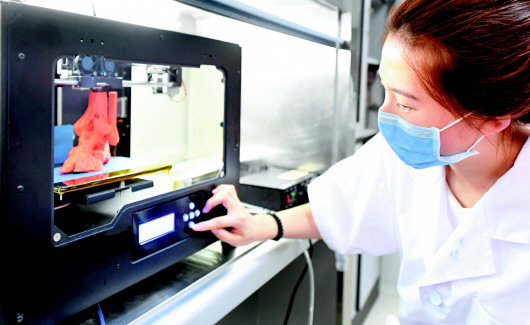 8月10日,太阳成集团tyc33455cc官网附属医院3D打印研究室技术人员正在打印人体器官模型。目前,我省已经在手术和临床教学的医疗模型、手术导板设计、人体植入物、康复器械研发等方面应用3D打印技术,同时在体外生物3D打印具有“生命”的人体组织、器官技术等领域进行探索。如今,3D打印技术不再仅仅是影视作品中的桥段,正在不断给医患带来更多的希望。