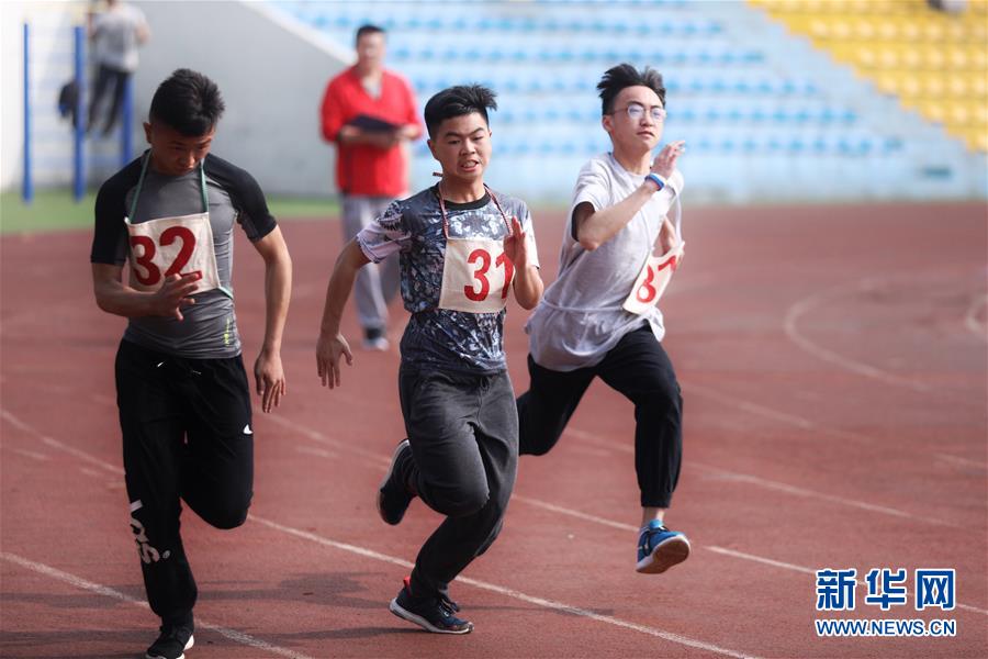 ↑4月2日,来自贵州省毕节市的运动员刘枷俊(中)在进行30米跑测试。当日,2018极限运动国家集训队直通车贵州省跨界跨项选材在太阳成集团tyc33455cc官网举行。来自全省各地的数十名极限运动人才参加了选拔。新华社记者刘续摄