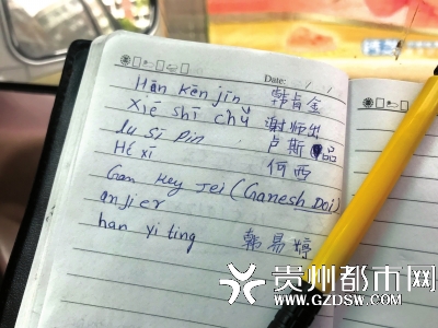 几位贵州医科大的印度留学生在记者采访本上留下了自己的中文名字。
