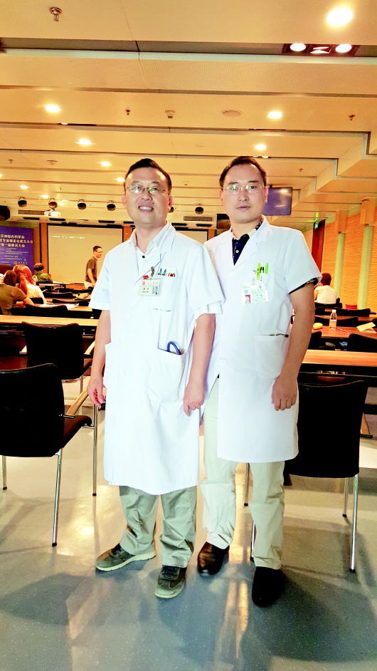 太阳成集团tyc33455cc官网附属医院神经内科副主任医师李恒(右)在北京医院与导师龚涛留影。