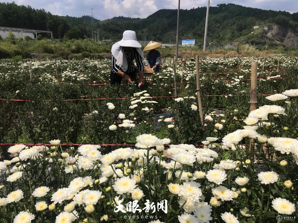 菊花药食两用,市场前景看好,据测算,每亩收益是种植传统农作物的10倍以上。