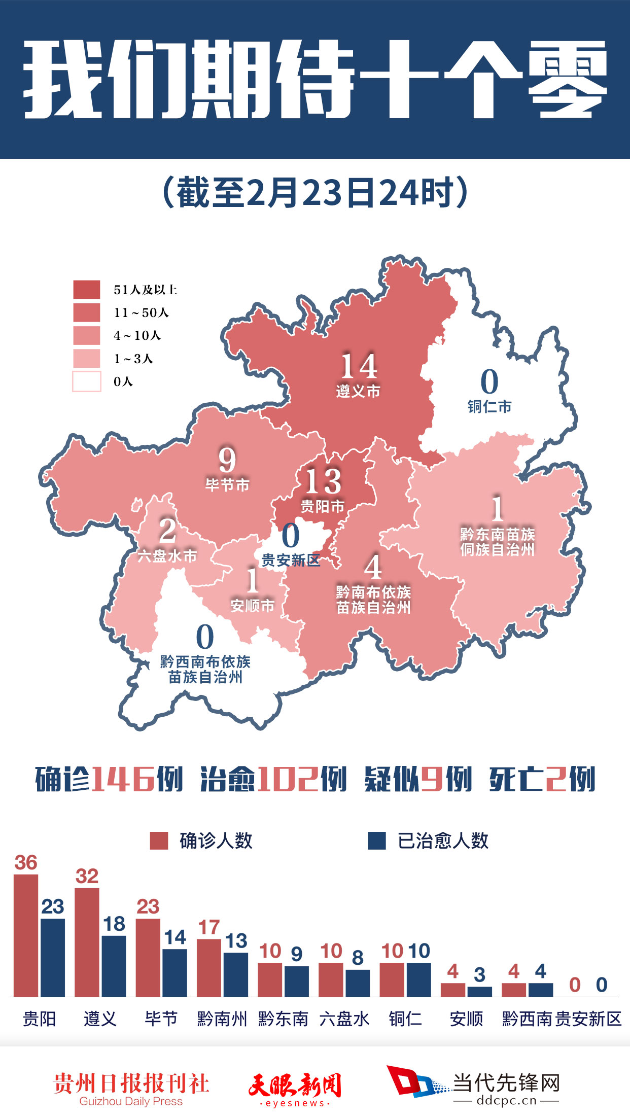 截至2月23日24时,贵州确诊病例和出院患者情况如下:所有新冠肺炎患者的“清零”。