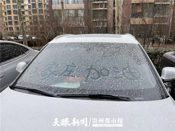 1月19日,石家庄下起了小雪,整座城市都变美了,停放的车辆,挡风玻璃薄薄的铺了一层雪。“石家庄,加油”我们在玻璃上写道。