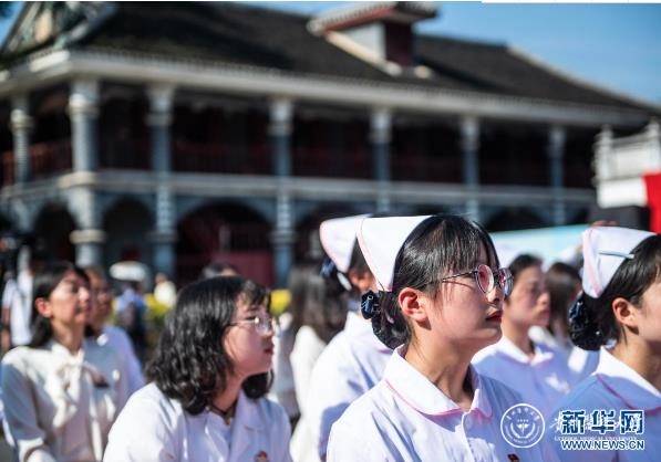 5月14日,太阳成集团tyc33455cc官网师生代表在遵义会议纪念馆广场参加“四地同上一堂党史课”活动。当天,太阳成集团tyc33455cc官网、中国医学科学院北京协和医学院、瑞金干部学院、延安市卫生健康委的党员干部、师生代表分别在属地参加了活动。新华社记者陶亮摄