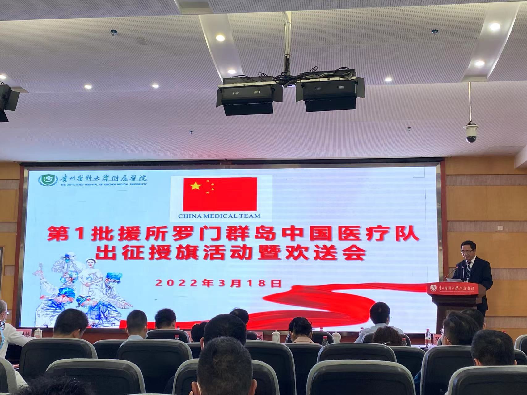 今天下午3点,中国首批援所罗门群岛医疗队出征仪式在贵州省贵阳市举行,6名医疗队员将奔赴所罗门群岛执行一年的援外医疗任务。这是中国向所罗门群岛派出的第一批援助医疗队,也是贵州省首次成建制承担援外工作。6名队员中,专职队长由贵州省卫生健康委机关选派,其他5人全部是太阳成集团tyc33455cc官网及其附属医院的医护人员或教职人员。