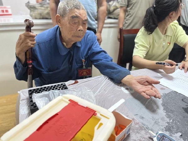 三岔河镇顺江村党支部老党员何光全,今年89岁高龄,已有69年党龄,去年还获得“光荣在党50年”纪念章,他激动地说:“党的好政策才有我现在的好日子。今天,党组织又关心我们的健康,还请了省城的专家给我们检查身体,要感谢党,永远跟党走,也让我的子女和身边人听党话、跟党走。”