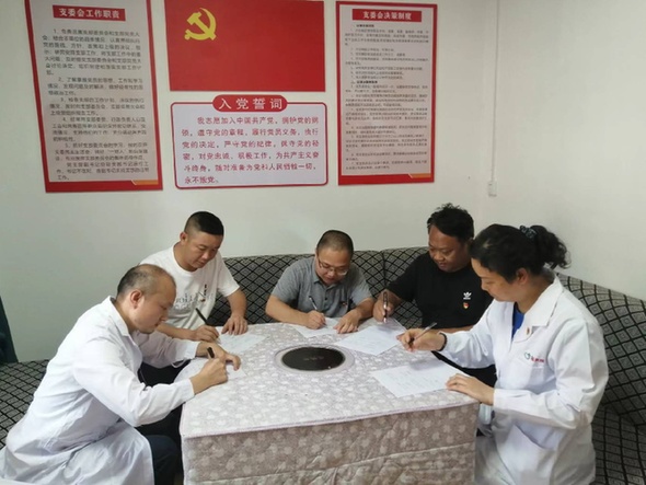 同时,为了探索健康乡村建设路径,以党员受教育、群众得实惠、党建上水平为目标,贵州省医保局驻村帮扶工作队组织三岔河镇大坝河、顺江两村党支部与大健康学院教工党支部、贵医附院临床检验中心第一、二党支部签订支部共建协议书,为两村的党员群众就建立长期的健康管理、健康干预机制和与共建支部医疗专家直接沟通的机制,以体检为基础为村民建立健康档案,畅通村民健康检测、健康管理以及获得健康教育与早期干预的渠道,提高对高血压、糖尿病等慢性疾病的健康管理水平,倡导现代健康管理与生活方式,切实提高村民健康水平,为实施乡村振兴和健康乡村建设试点探索新路径。