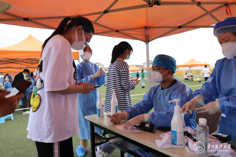 协助进行扫码登记、试剂管配发、秩序维护……青年志愿者中有很多熟悉的身影,他们或许是平时课堂上的老师,或许是同学们喜爱的团干部、辅导员老师....一句句“我报名”“我能行”“我可以”,展现的是师者风范,更是贵医青年担当。