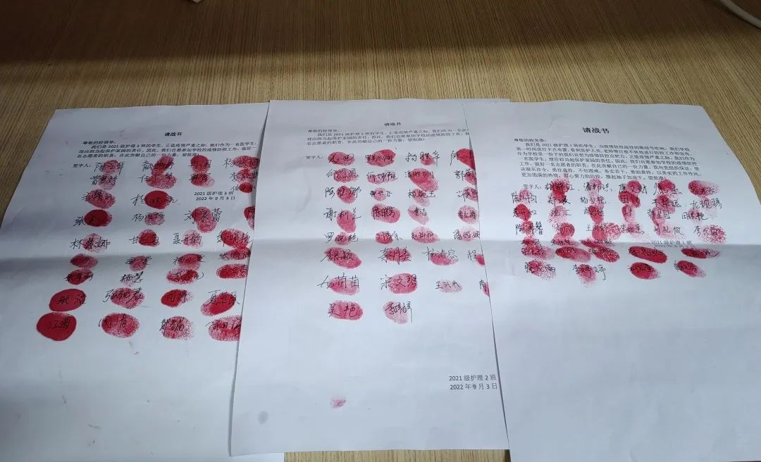 这群贵医青年,怀揣奉献之心,在请愿书上按下一排排手印,用行动践行“诚於己,忠于群,敬往思来”的校训,恪守着“性命相托”的誓言。