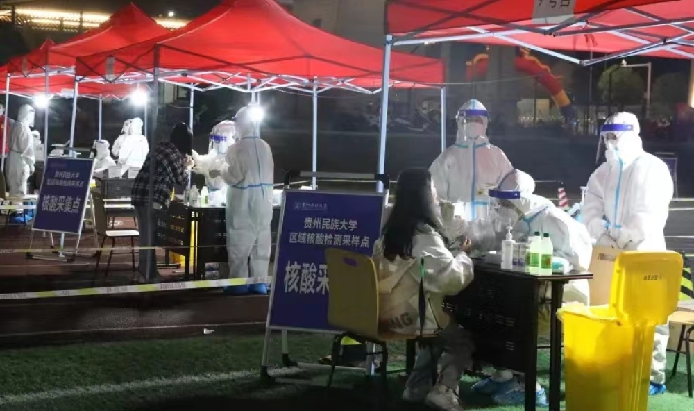 ▲贵州大学:9月1日以来,学校在东校区、西校区、南校区分设67个核酸检测点,保证全校师生按时完成核酸检测,各单位部门有条不紊,保障各项工作有序开展,在校园里留下一道道绚丽的“五彩防线”。