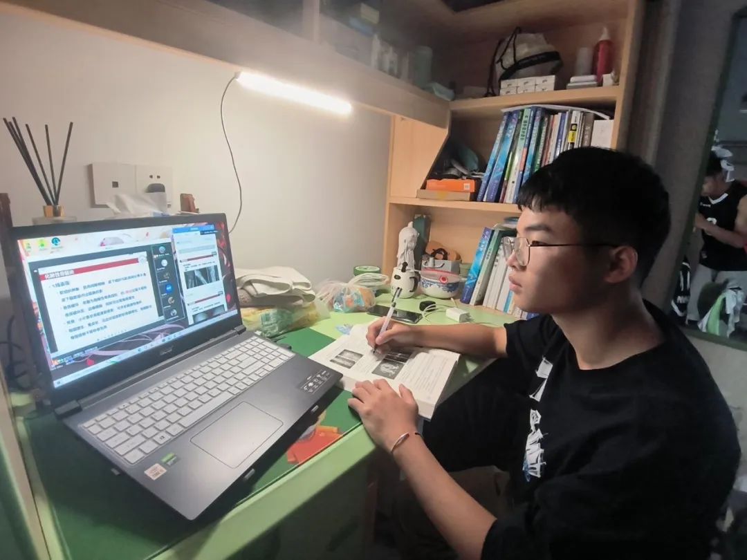 教师室内直播,学生宿舍听课,督导严格巡课,师生积极行动,在疫情期间通过线上课堂打破空间限制,确保教学工作方案按时高质量完成,提升学生在寝室的学习质量,确保疫情防控期间“停课不停教、停课不停学”。
