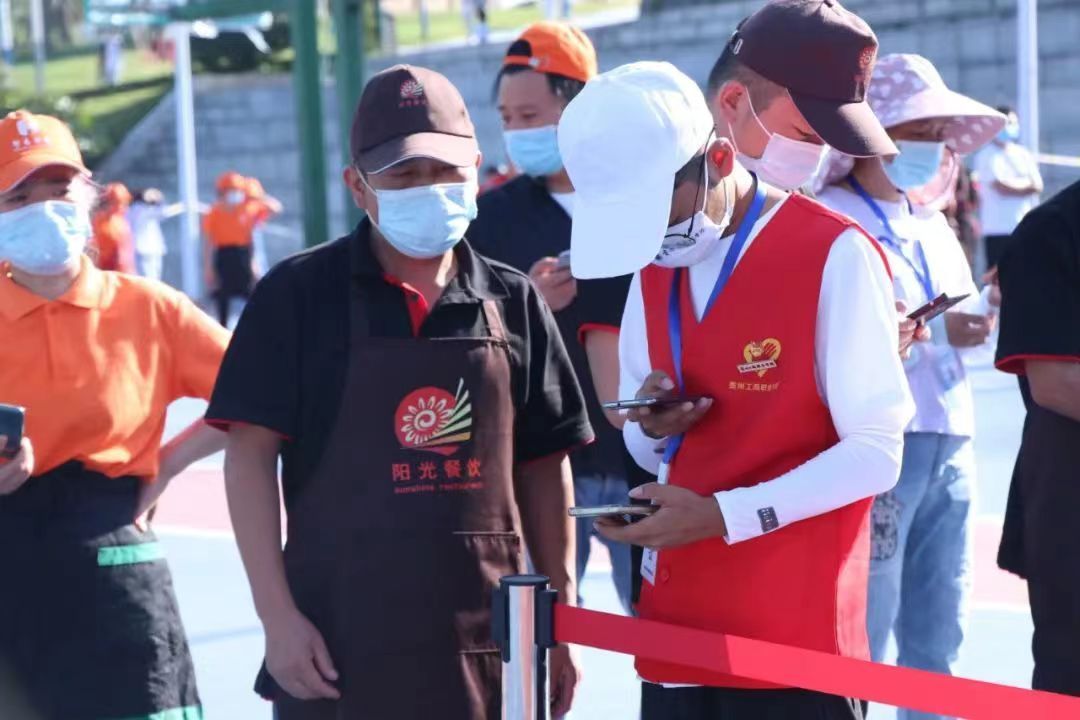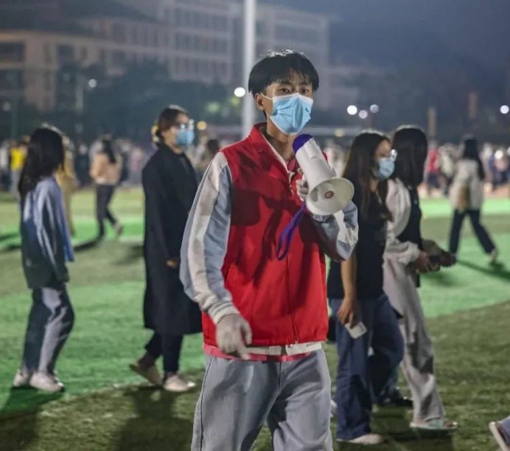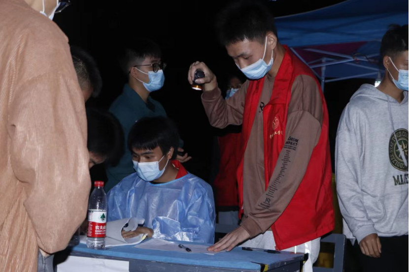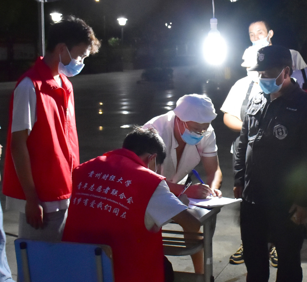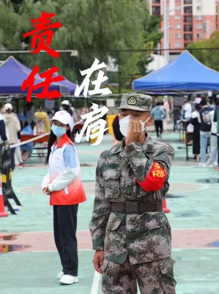 ▲贵阳学院:披上红马甲,戴上口罩……面对突如其来的疫情,他们奔忙学校各个角落,核酸采样点,变身 " 搬运工 "" 登记员 "" 巡逻员 ",用爱和汗水守护着校园的安全。