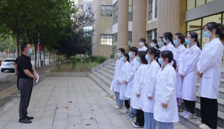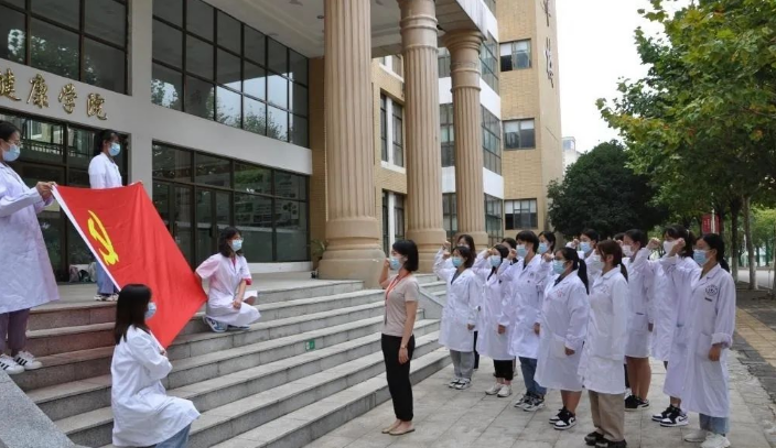 在出征前,公共卫生与健康学院还针对流调志愿者组织了培训会,成立了流调志愿者临时党支部,学院党委书记郑维薇带领流调志愿者中的党员向党旗宣誓。