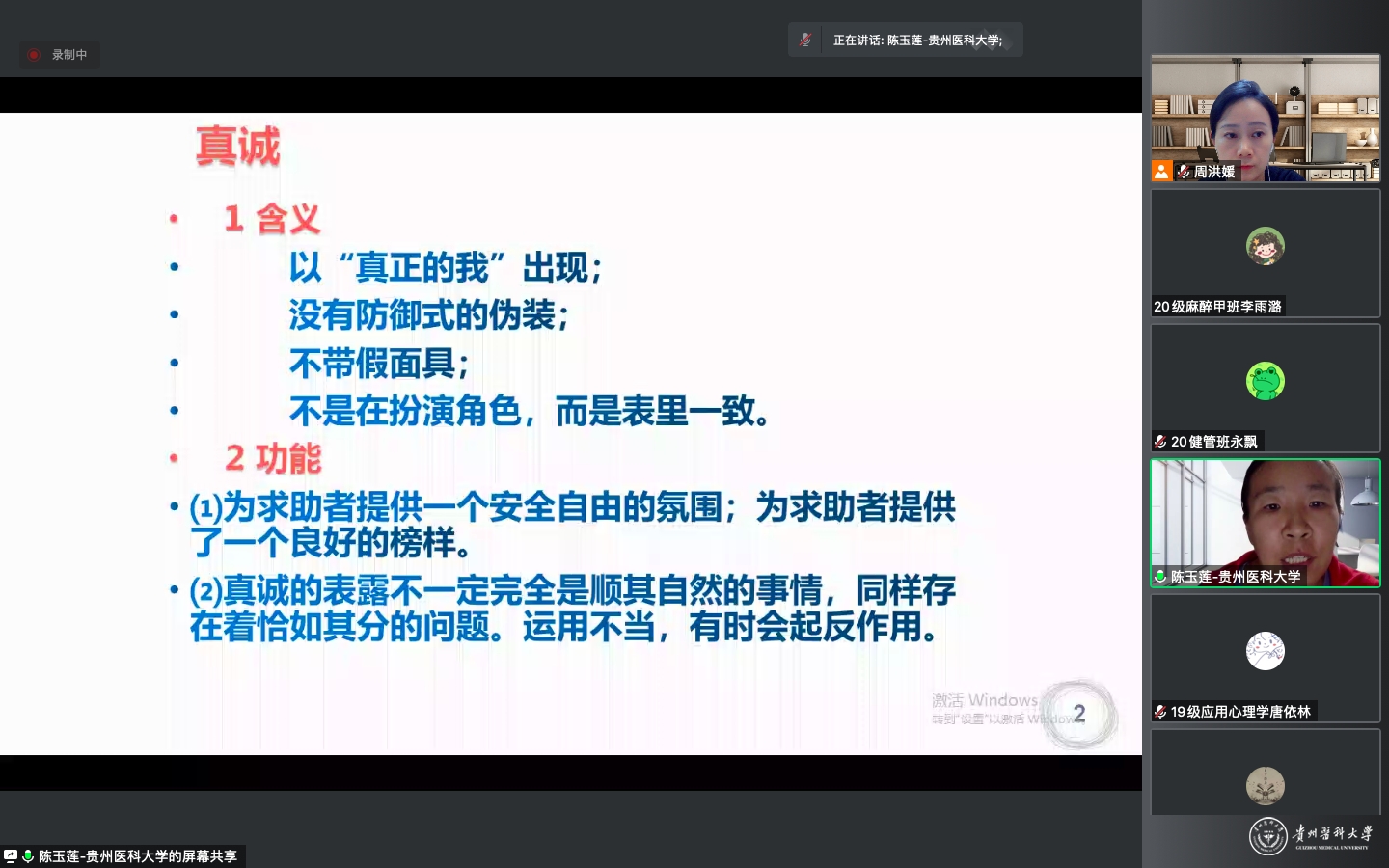 2020级临床检验诊断学硕士研究生心理委员谢璐鸿:本次学习培训,我学到疫情期间可能出现的心理反应,作为心理委员,在做好自我心理健康维护的同时,要协助辅导员老师做好班级同学们的心理健康工作,在疫情防控期间,要学会正视并接纳负面情绪、采取适当的方法调整负性情绪。