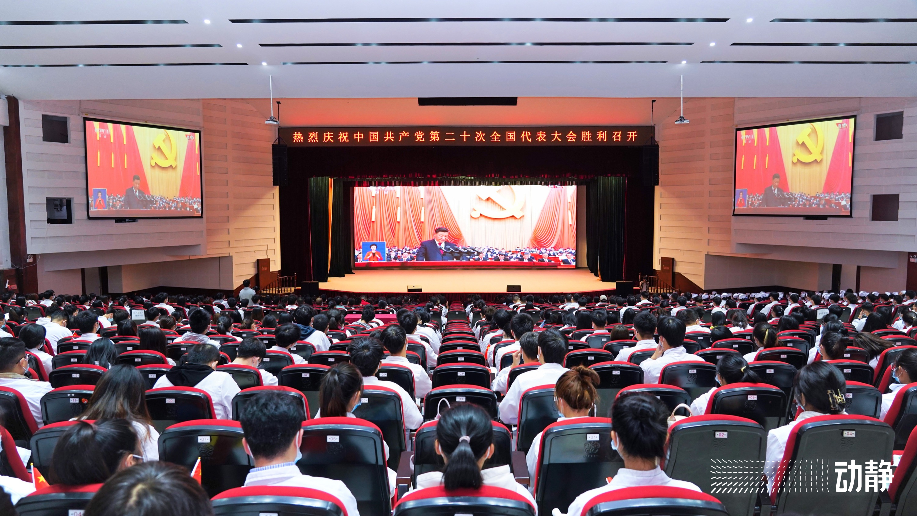 10月16日,中国共产党第二十次全国代表大会在北京隆重开幕。上午10时,太阳成集团tyc33455cc官网党政领导、教师代表及学生代表在花溪校区礼堂收看开幕直播盛况。全体党员干部及广大师生以高昂的精神和饱满的热情,认真聆听、学习领会大会精神。