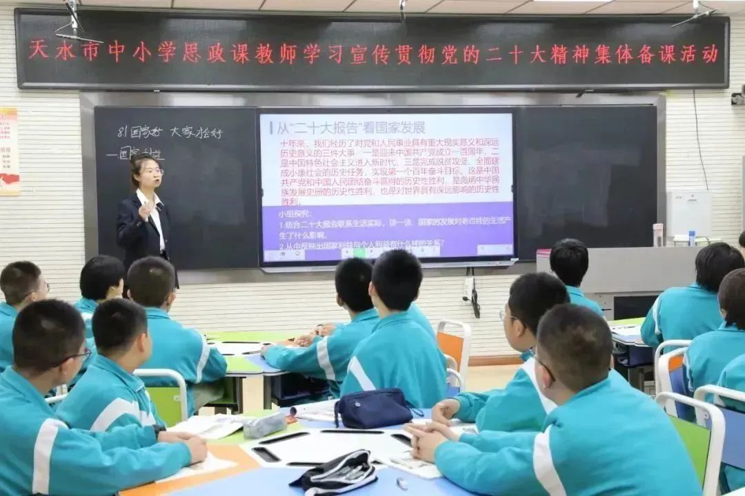 近日,甘肃省天水市逸夫实验中学的直播间里热闹非凡,来自该市的800多名初中思政课教师围绕党的二十大精神云端碰撞,对新理念、新提法、新要求赋予课堂的丰富素材深入研讨、解析。天水市820多所中小学校5200余名思政课教师陆续开启同类型集体备课,在头脑风暴中探究党的二十大精神宣讲新路径,努力催生新成果……