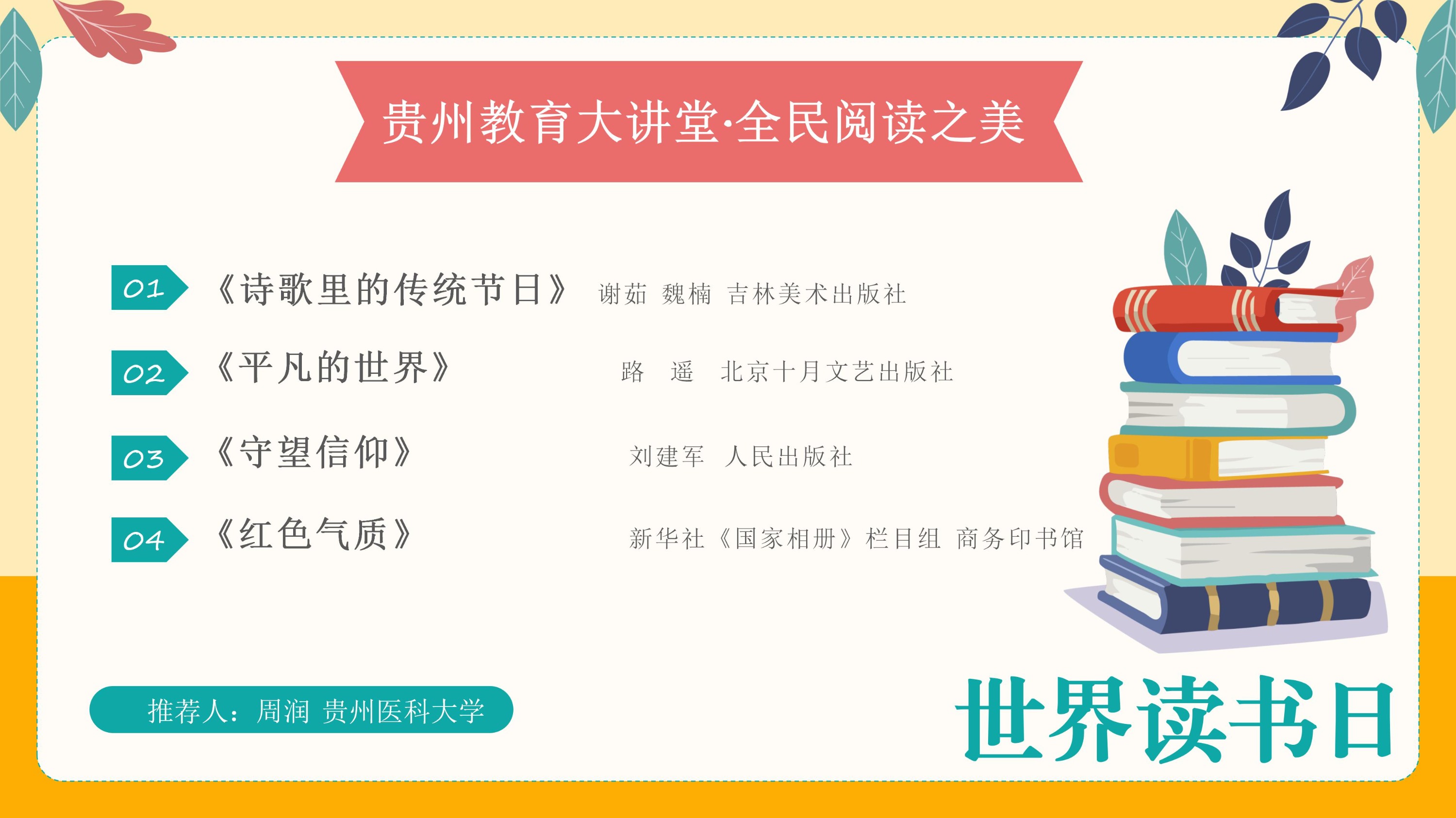周润在节目中给全省师生推荐了4本书籍。