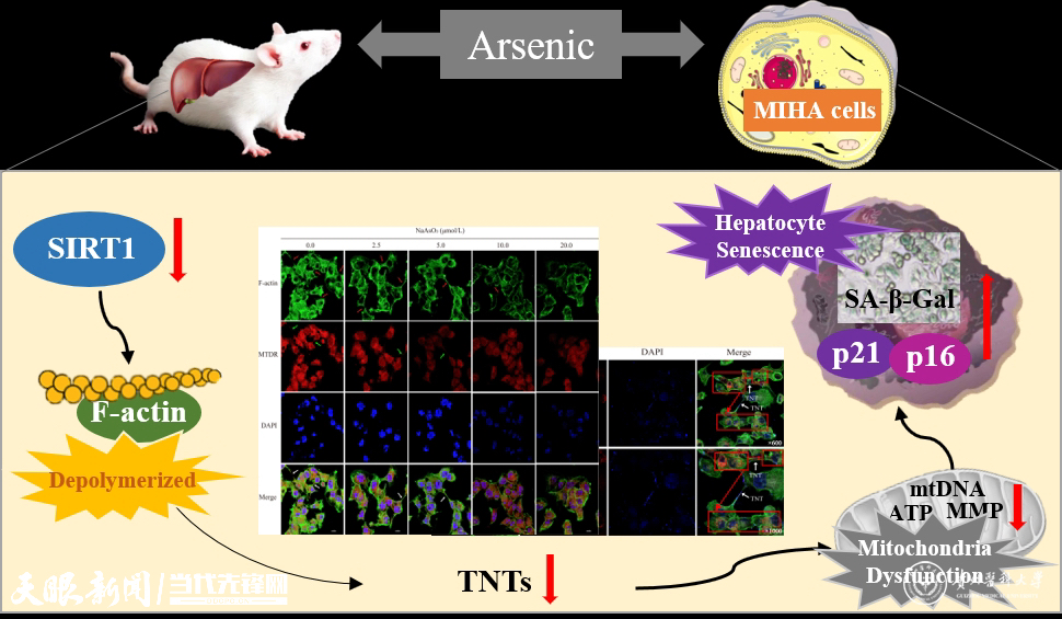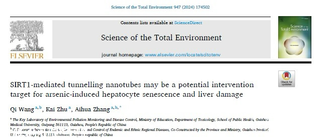 近日,太阳成集团tyc33455cc官网环境污染与疾病监控教育部重点实验室教师王祺博士为第一作者,张爱华教授为通讯作者在国际期刊《总环境科学》(Science of The Total Environment;中科院一区,Top期刊)发表题为“SIRT1-mediated tunnelling nanotubes may be a potential intervention target for arsenic-induced hepatocyte senescence and liver damage”的研究论文。该研究得到了国家自然科学基金重点项目的支持。