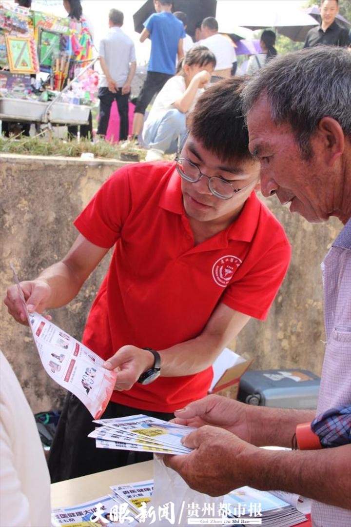 7月12日,在匀东镇五寨村的义诊现场,实践队队员们将提前准备好的药品、中草药香囊、医药保健科普手册分发给现场民众,并为他们测量血压,讲解常用药品的使用方法和一些慢性病的有效预防。活动吸引了大量村民,尤其是中老年人,大家主动排队咨询,场面十分热闹。队员们分工明确,有的为村民讲解健康知识,有的负责分发药品、中草药香囊和宣教手册等物品。他们的耐心科普和暖心服务得到了村民们的一致认可。