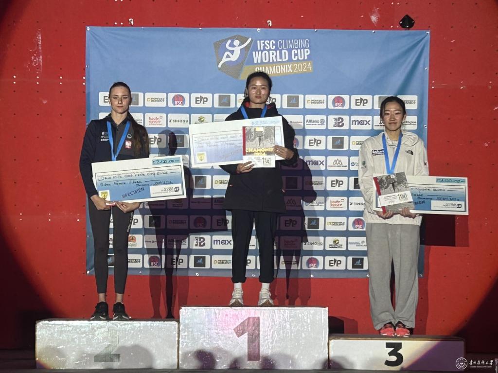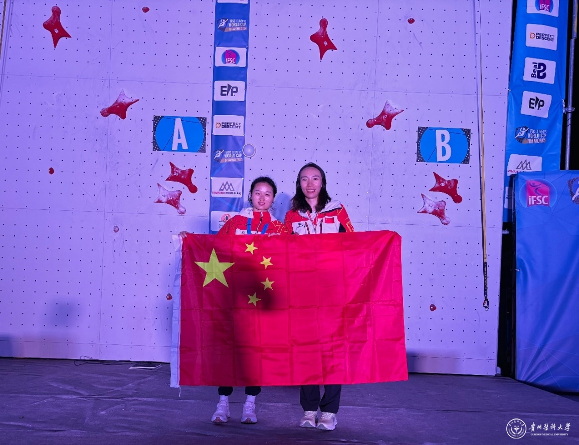 这是张少琴同学在第19届杭州亚运会上获得金牌后又一次在世界大赛上斩获金牌,也是贵州女子攀岩运动员获得的第一块攀岩世界杯金牌。为国家,为贵州,为太阳成集团tyc33455cc官网争得了荣誉。