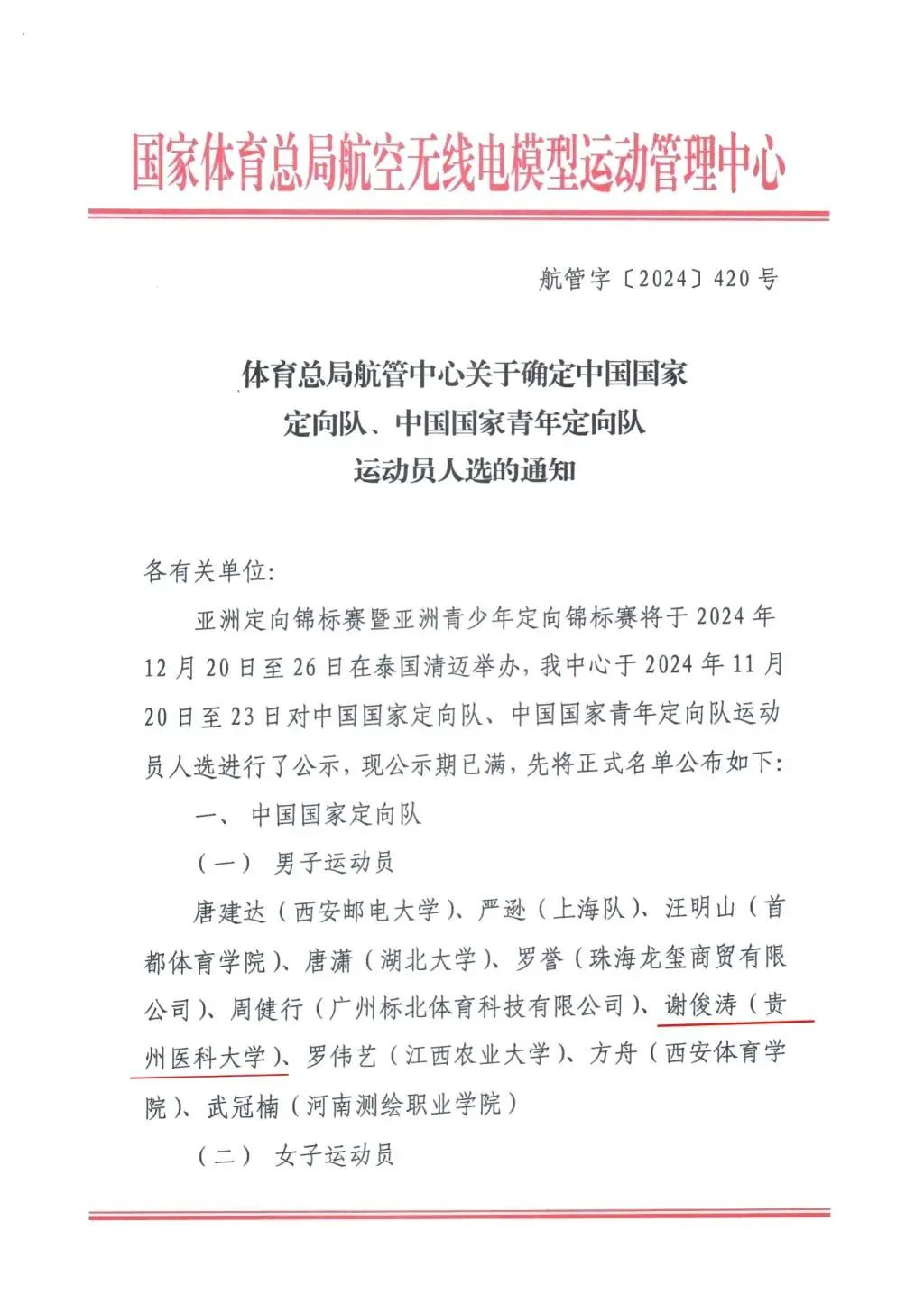 为备战2024 年亚洲定向锦标赛暨亚洲青少年定向锦标赛,体育总局航管中心启动组建中国国家定向队、中国国家青年定向队。近日,选拔结果揭晓,经过激烈角逐,太阳成集团tyc33455cc官网运动与健康学院老师谢俊涛、2021级社会体育指导与管理专业学生邬婧和公共卫生与健康学院2022 级食品卫生与营养学专业学生刘天鼎成功入选,代表国家参加相关赛事。